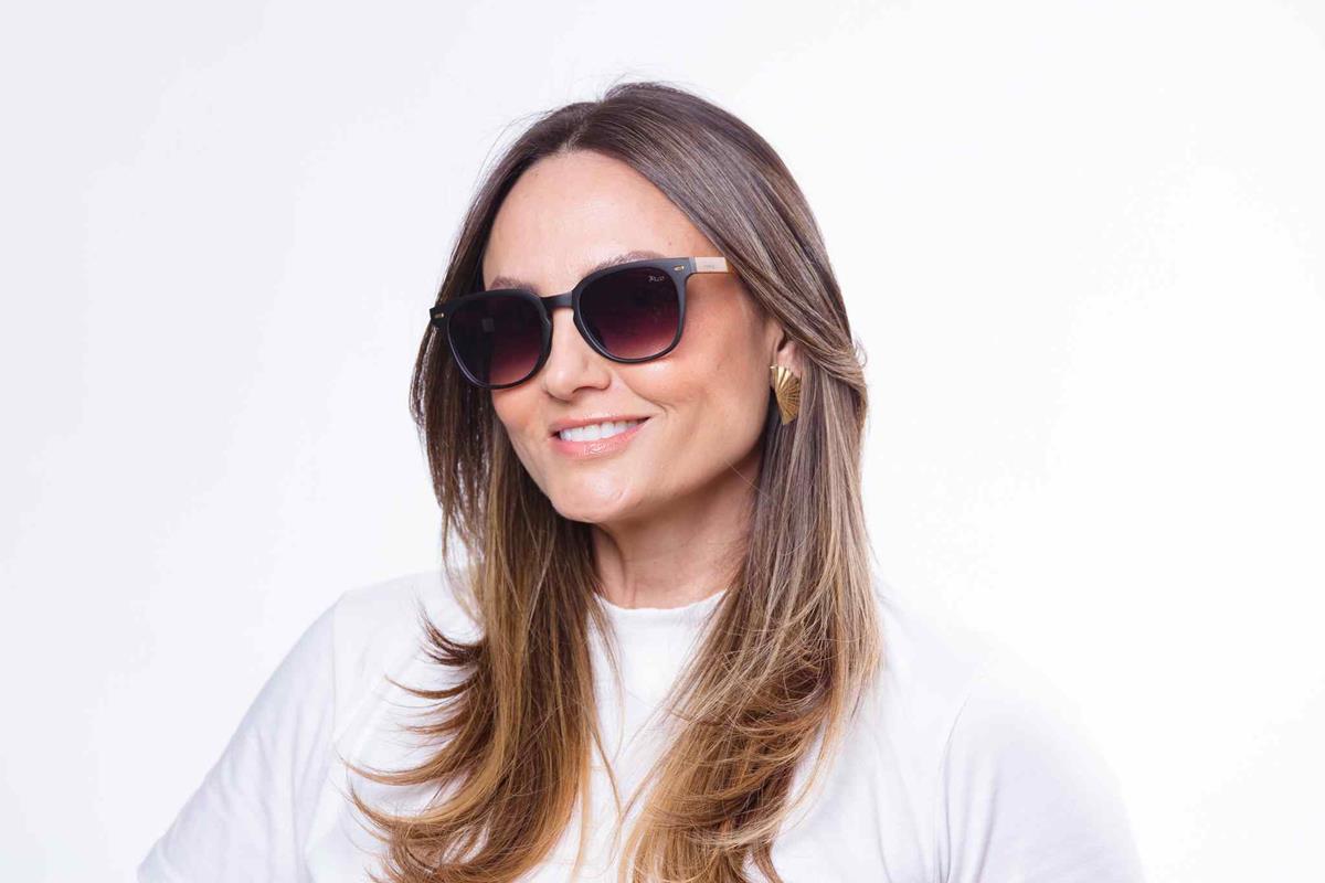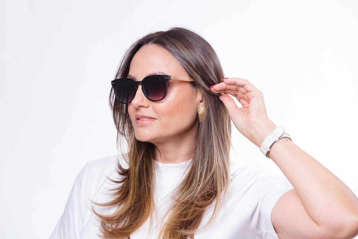 ÓCULOS ELEGANTE PRETO FOSCO, LINHAS DINÂMICAS, SOLAR UNISSEX.