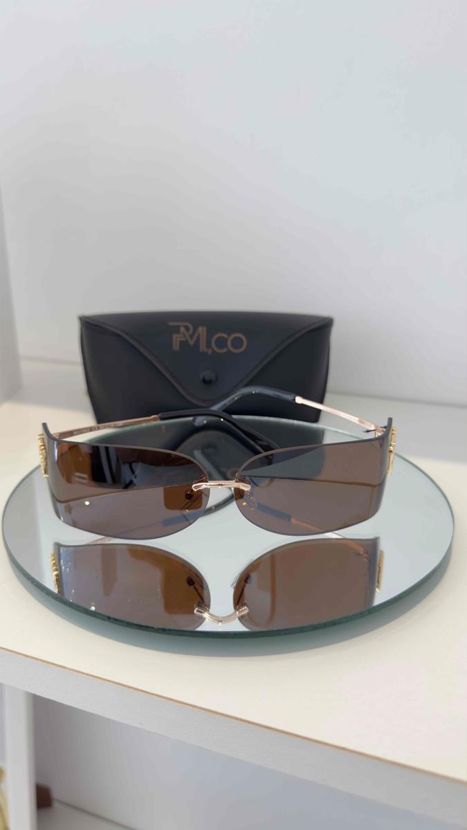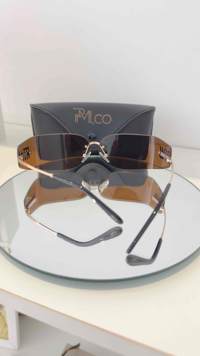 MÁSCARA LENTE COSMÉTICA EM TRÊS PEÇAS MARROM, LINHAS DINÂMICAS, SOLAR UNISSEX.
