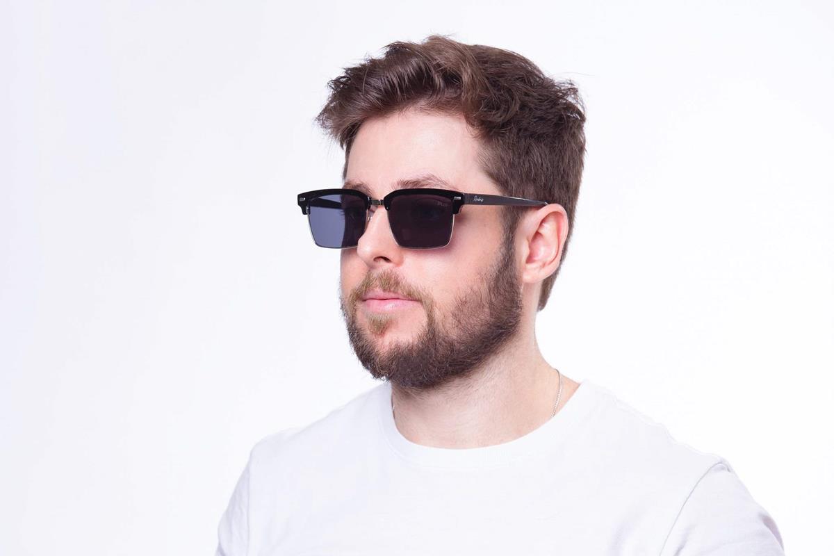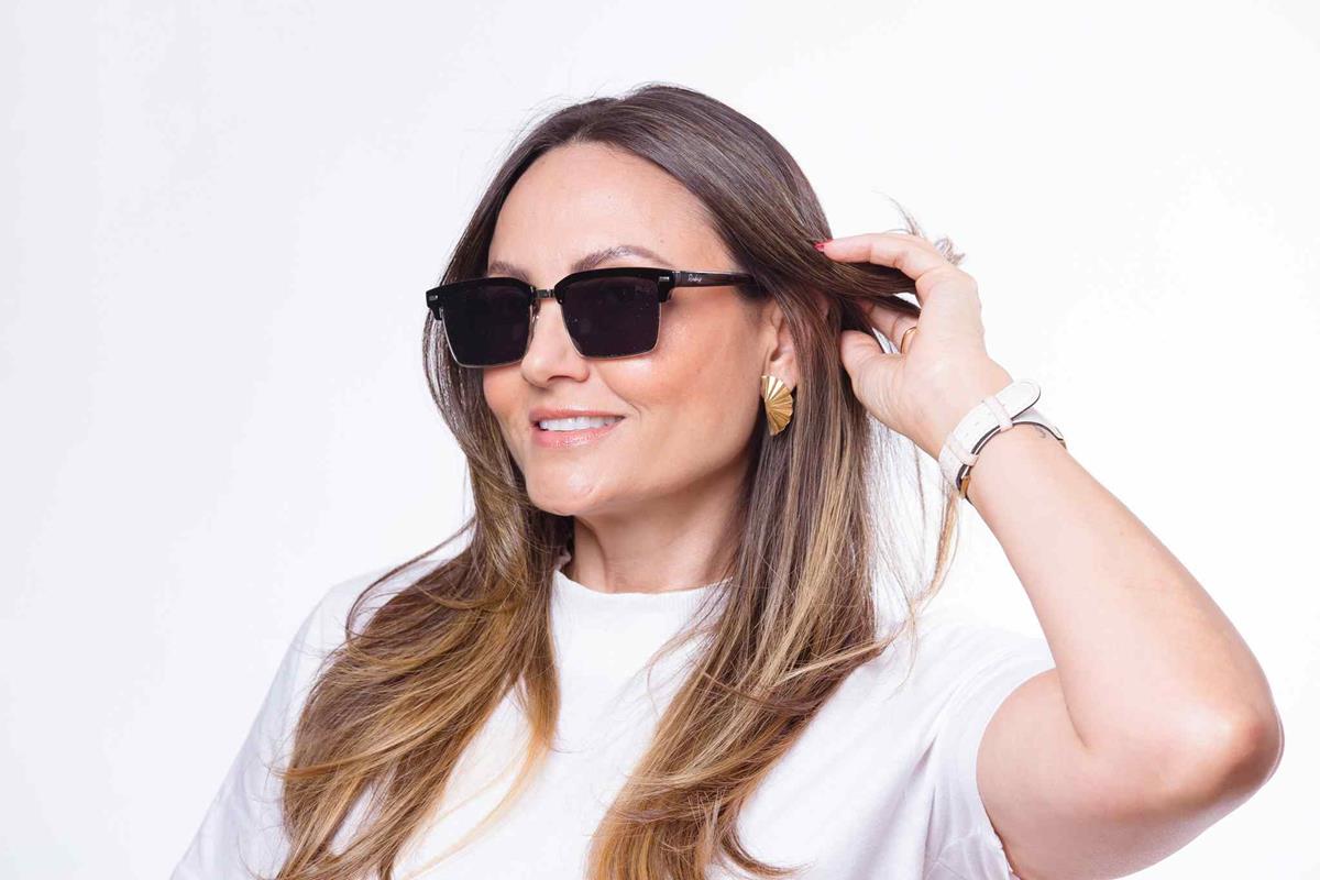 ÓCULOS CLÁSSICO PRETO, LINHAS RETAS, SOLAR UNISSEX.