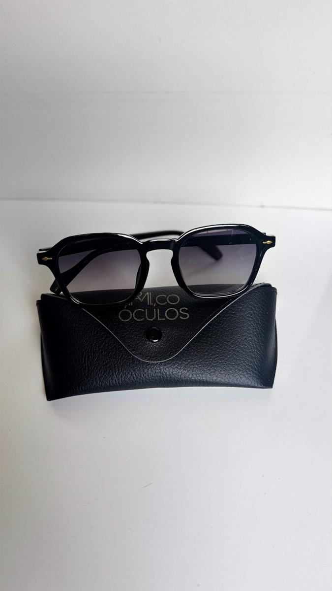 QUADRADO ACETATO PRETO; LINHAS RETAS; SOLAR UNISSEX.