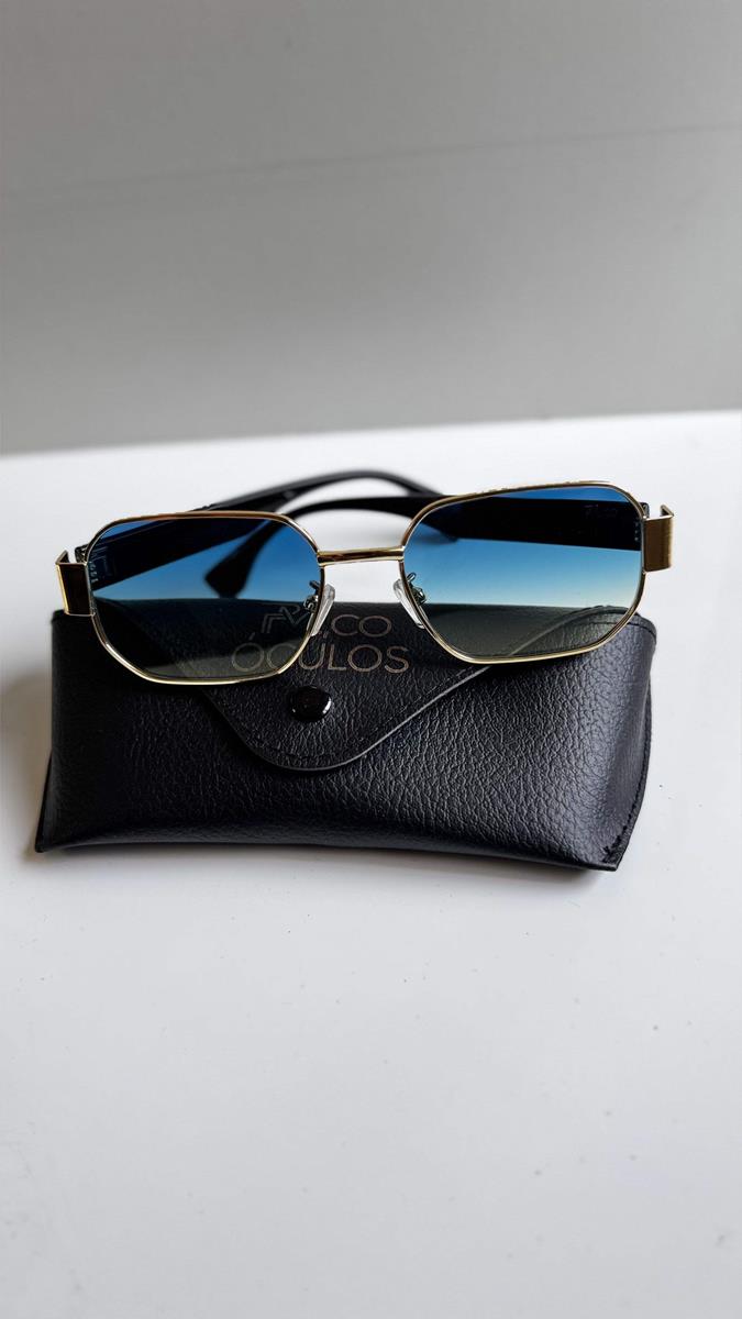 RETANGULAR METAL LENTE AZUL; LINHAS RETAS; SOLAR UNISSEX.